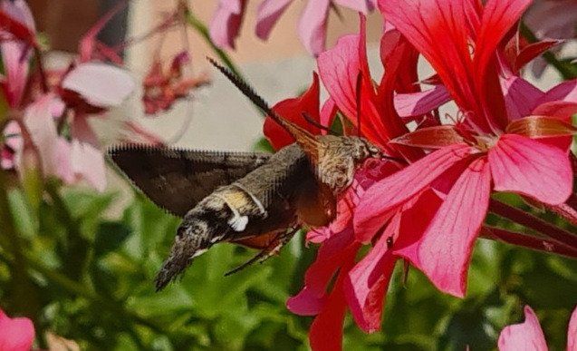 Über eine noch einigermaßen intakte Natur dürfen wir uns noch freuen. Einige Exemplare in der Tier-und Pflanzenwelt sind zwar so gut wie ausgestorben, umso mehr freuen wir uns über andere seltene Arten wie z.B. über das Taubenschwänzchen. (Macroglossum stellatarum) Es ist ein Schmetterling (Falter) und leitet seinen Namen von einer gewissen Ähnlichkeit der Schwanzfedern zu Tauben ab. Wegen seines auffälligen Flugverhaltens wird das Insekt - um ein solches handelt es sich - auch Kolibrischwärmer genannt, weil es fast unentwegt mit den Flügeln schlägt. Mit seinem bis zu 25 mm langen Saugrüssel trifft er zielgenau in die Blütenkelche und saugt im Schwirrflug den Nektar aus den Blüten. Der Schmetterlingsflieder und die Prachtkerze sind beliebte Ziele. Das Verbreitungsgebiet ist hauptsächlich in Lichtungen, Parks oder Gärten.