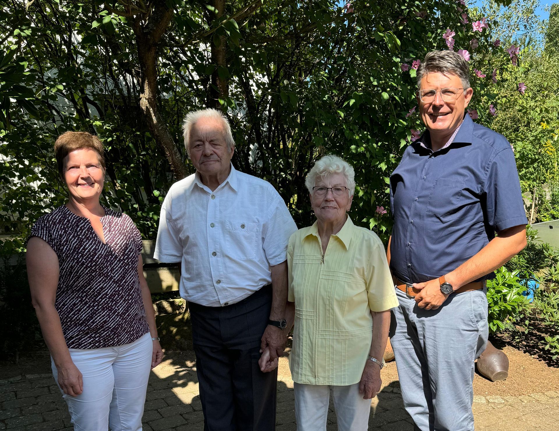 Ortsbürgermeisterin Manuela Laub und Verbandsbürgermeister Torsten Blank freuten sich Renate und Franz Lauth zu 65 Ehejahre gratulieren zu dürfen und wünschten noch viele gemeinsame Jahre im Kreis ihrer Familie.