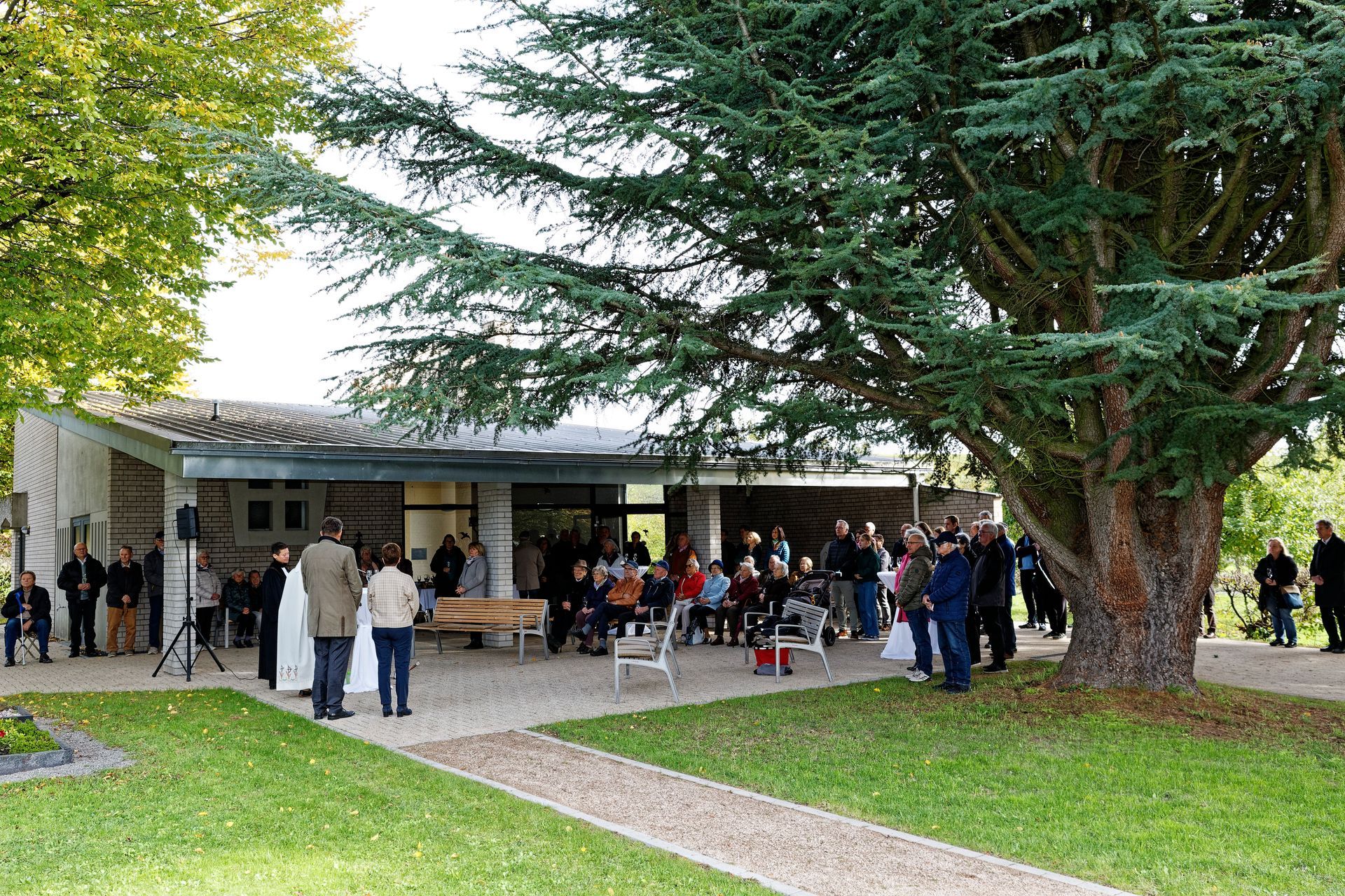 Pfarrerin Dorothea Helfrich und die Gemeindereferentin Doris Burkhart verwiesen auf den Friedhof als "öffentlicher Raum", Ort der Begegnung, der Trauer, der Tränen, der Erinnerung, der Stille, des Trostes und der Einkehr. Mit dem gemeinsamen Gebet des "Vater unser" und dem Segen Gottes für alle, die auf dem Friedhof bestattet sind und deren Angehörigen, fand die feierliche Zeremonie einen würdigen Abschluss. Musikalisch umrahmt wurde sie von Ralf Pahl und Elias Laub.