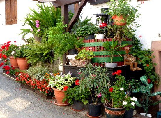 hat die Göcklinger Rundschau bei Familie Christel und Hans Gütermann, in der Hauptstraße 27. Im Hof ist eine Blumenpracht erblüht, die weithin ihresgleichen sucht. Mit welcher Liebe und Hingabe Gütermanns ihren "Garten" pflegen und hegen lässt sich daran erkennen, dass die ganze Schönheit aus Topfpflanzen besteht und einer intensiven Pflege bedarf. Auf dem Bild sieht man nur einen Teil der Pracht, der andere Teil befindet sich auf der gegenüber liegenden Hofseite. Es lohnt sich also, einen Blick in den Hof zu werfen.