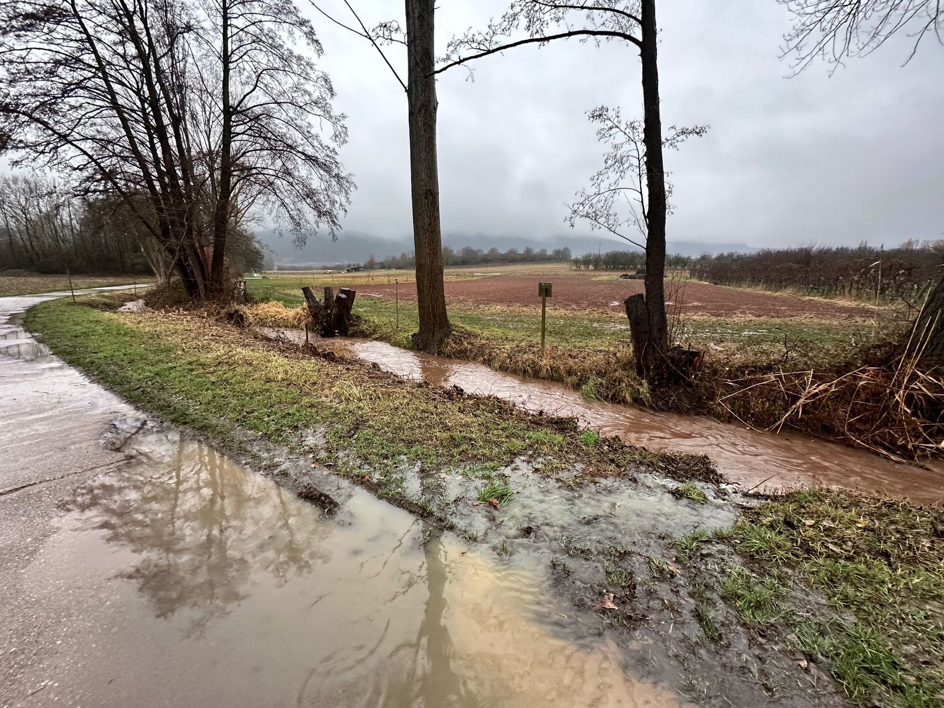 Den Kaiserbach kennt man in den letzten Jahren eher als gemütliches Gewässer, welches sich von Westen kommend durch Göcklingen schlängelt. In den Sommermonaten des vergangenen Jahres führte er trotz des lange ausbleibenden Regens noch ein Minimum an Wasser, während andere Bäche wie der nahegelegene Birnbach austrockneten. Jetzt, nach dem vielen Regen der vergangenen Wochen, welcher Anderorts für Hochwasser sorgte, fliest nun auch das Tauwasser des Schnees in den Kaiserbach, was diesen am Donnerstag Morgen kurzzeitig an sein Limit brachte. Nach ein paar Stunden entspannte sich die Situation wieder. Im Dorfkern selbst waren die Pegelstände dem Wetter entsprechend hoch, aber führten bisher zu keinen der Rundschau bekannten Übertritten.